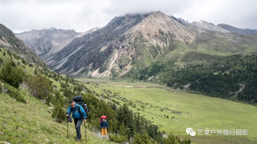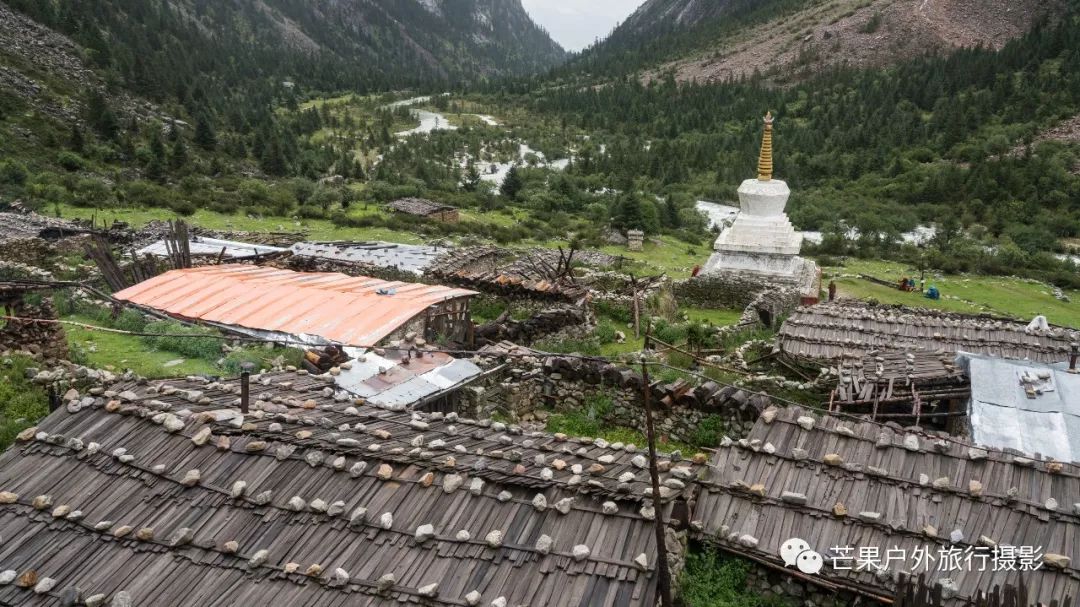 热梯河谷水流蜿蜒曲折,水流清澈见底,早晨花海草地拔营,开始绕着河湾徒步,穿越湿地,穿越树林,极速的爬升至左侧上游河谷,开始缓慢的河谷爬升至最后的垭口沟口。我们在这里午休,吃路餐,然后就开始陡峭的爬升,垭口难点正式开始,上升到左侧的河谷平台,就能看见过拉卡垭口,很平缓的一个垭口,轻松的就翻过去了,虽然海拔高,但是难度不算大。拍完照片开始下山,下到谷底就开始下雨,此时遇到当地的小朋友,打了招呼给了几颗糖果便继续沿着河流往下走,到了几个牧民家,去家里喝了点酥油茶,一如既往的纯纯的味道。喝完茶,告别牧家,继续往格木村方向走去,还没有到达格木村,就已经回味到几年前这里的风景如此漂亮,现在夏季的绿色更有味道,安静的村落,绿色的地毯,遍地花海,原始的小木屋,这里生活着这么一群犹如世外桃源的村民。拓宽的公路,也行再过几年这里会变得非常的热闹!因为这里实在太美!今晚就在格木帐篷客栈住下,放好行李安顿下来,我们去了后山拍了许多村子的照片。