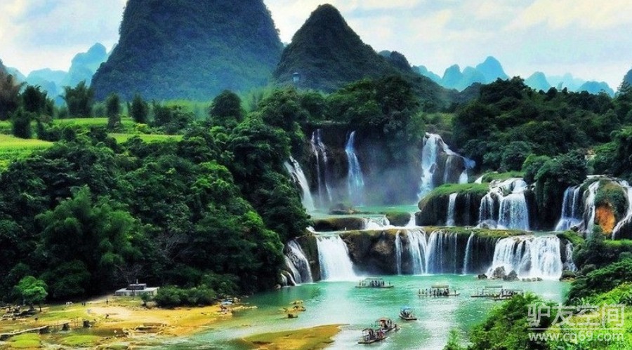 万尾金滩位于东兴市的京族三岛——万尾岛、巫头岛和山心岛,是我国大陆海岸线的最西南端,居民以京族为主。其中以万尾岛上的金滩最为著名,金滩面积15平方公里,因沙色金黄而得此名。金滩之沙金黄、细腻而柔软,纯天然的沙滩延绵数十里,站在金滩上,迎着海风、隔着蔚蓝色的海水,可以遥望西南方向水天一色的越南海景。 德天瀑布位于中越边境广西大新县硕龙镇,为国家特级景点.横跨中国越南两个国家,排在巴西-阿根廷之间的伊瓜苏大瀑布、赞比亚-津巴布韦之间的维多利亚瀑布以及美国-加拿大的尼亚加拉瀑布之后,是世界第四大、亚洲第一大跨国瀑布,.它起源于广西靖西县归春河,终年有水,流入越南又流回广西,经过大新县德天村处遇断崖跌落而成瀑布.浩浩荡荡的归春河水,从北面奔涌而来,高崖三叠的浦汤岛,巍然耸峙,横阻江流,江水从高达50余米的山崖上跌宕而下,撞在坚石上,水花四溅,水雾迷朦,远望似缟绢垂天,近观如飞珠溅玉,透过阳光的折射,五彩缤纷,那哗哗的水声,振荡河谷,气势十分雄壮。瀑布三级跌落,最大宽度200多米,纵深60多米,落差70余米,年均流量50立方米/秒,所在地地质为厚层状白云岩。是东南亚最大的天然瀑布,被国家定为特级景点。它与越南的板约瀑布连为一体,就像一对亲密的姐妹。真可谓德天归来不看书。抛开一切烦嚣,融入大自然的怀抱吧!与山水相依,在清幽绝俗的山水书廊中,您的心灵将得到净化。