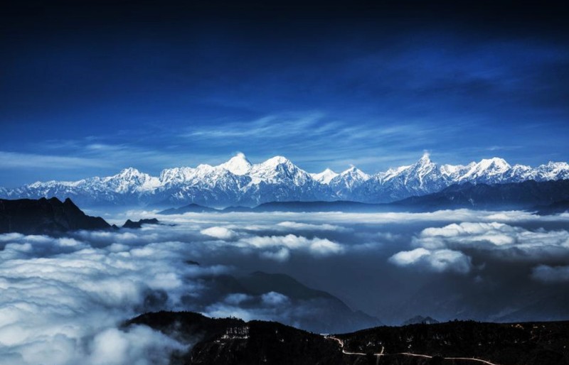 【牛背山简介】 牛背山位于二郎山朝大渡河一侧,视野开阔,云海壮丽,被誉为“中国最大的观景平台”,是绝佳的摄影圣地。牛背山的云海,浓密而均匀,壮阔而平缓,随处可见的瀑布云犹如阿凡达中“哈利路雅山”一般让人感觉踏步于空中;而环顾四周连绵不断的群山错落有秩,层次分明,蜀山之王贡嘎雪山矗立于最高点,泥巴山、娘娘山、瓦屋山、峨眉山、夹金山、四姑娘山和二郎山在前,大渡河大峡谷在后,几乎天府之国的所有名山峻岭在此时都变成了玲珑盆景,而翻滚的云雾之下,群山丘陵逐级降低,缓缓融入稻浪翻滚的天府平原。