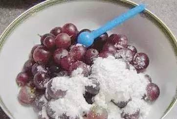 葡萄不要揪下来洗 很多人洗葡萄喜欢一粒粒揪下来洗,觉得这样洗得干净。然而,事与愿违,从营养和安全的角度来说,这种方法是错误的。 因为这样洗容易破坏果蒂,表面的农药和细菌可能会通过破口进入到葡萄里,污染果肉。另一方面,葡萄的部分营养也会溶解到水里流失。 所以,最安全的做法是,先用流水成串冲洗后,再用剪刀将其剪成方便清洗的小串,如果不嫌麻烦,可以剪成单粒,注意不要刺伤果肉。 然后,将其浸泡10分钟左右,这个过程中可以加少量面粉,以吸附葡萄表面的农药和一些灰尘等脏东西。 最后,再用清水冲洗干净即可。 水中加一物,葡萄洗得特干净! 1、加面粉 黏走脏东西 面粉水的黏性比较大,把葡萄往面粉水里涮一涮,葡萄上的脏东西就被黏黏的面粉水粘下来带走了,所以葡萄会洗得特别干净。