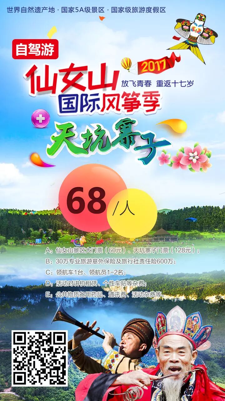 [自驾游] 福利特价【仙女山风筝节¥68】每周六、周日、五一节发团:仙女山、天坑寨子[重庆] |