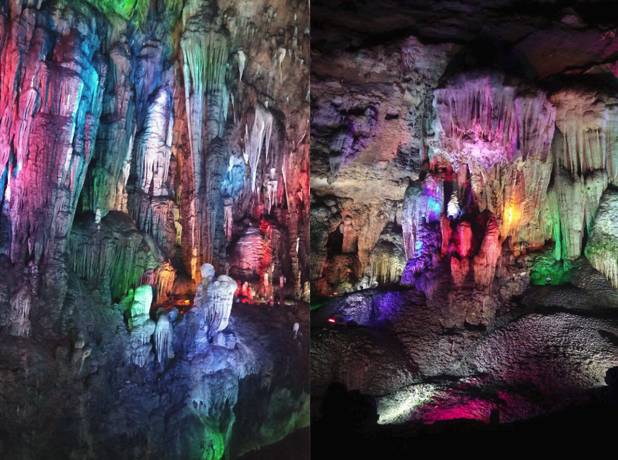 桃花源内还有一个伏羲洞,喀斯特地貌形成的溶洞,溶洞内非常凉爽,五光十色的钟乳石看花了眼。
