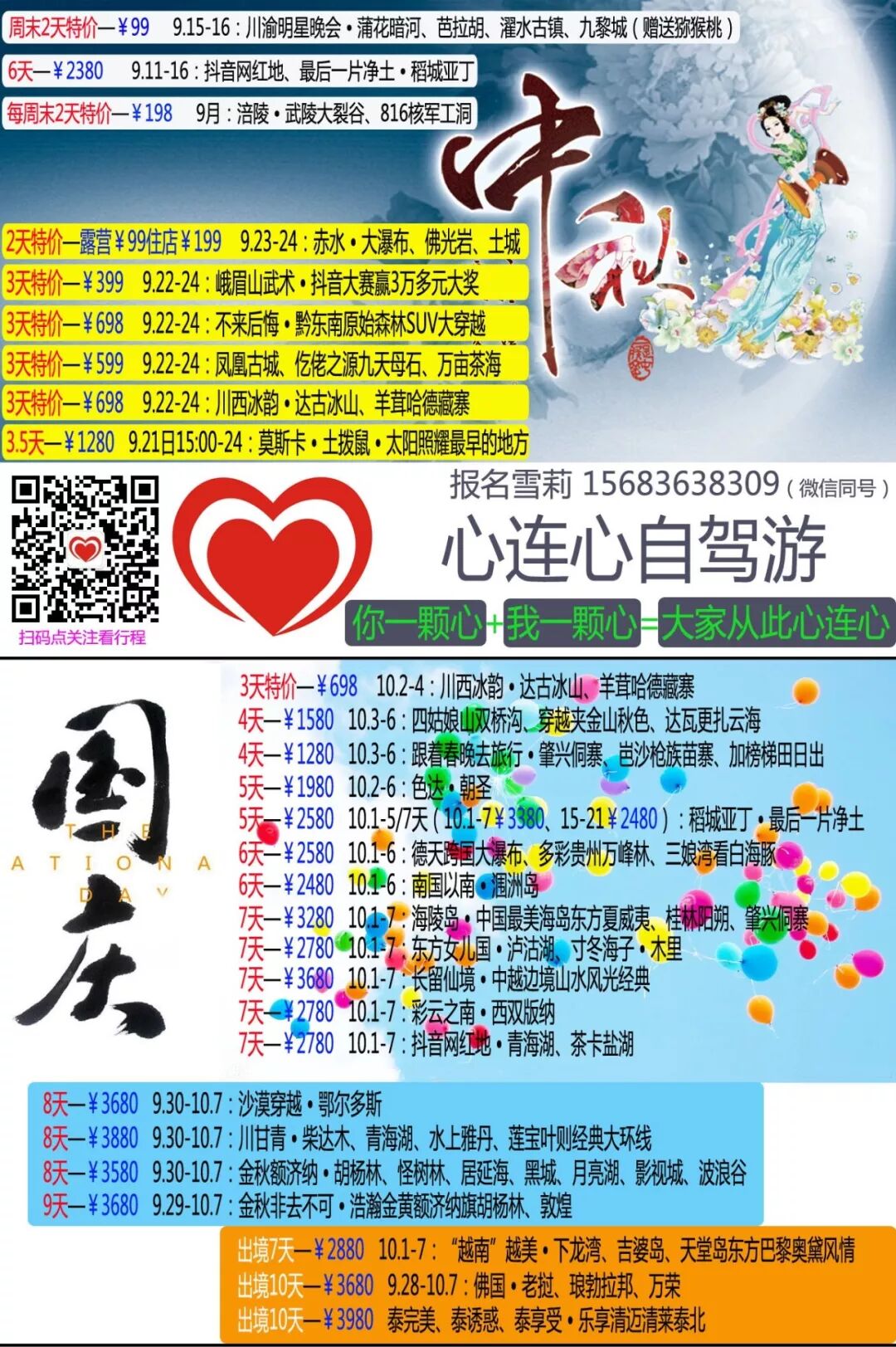 【国内外✈飞机、大巴团报名点:详询工作人员及报名】 【欢迎各地免费加盟,一起心连心旅行!】 【报名信息】