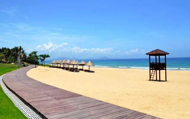 历史悠久,源远流长,文化多姿多彩。天涯海角、大小洞天、崖州古城、落笔洞三亚古人类遗址等都蕴涵着丰厚的历史文化。三亚地处海南省的最南端,是我国唯一的热带滨海旅游城市,境内汇集了阳光、海水、沙滩、气候、森林、动物、温泉、岩洞、田园、风情等十大风景资源。2007年北京奥组委宣布三亚成为08北京奥运会国内火炬传递的第一站。 【海上观音】三亚南山海上观音为正观音的一体化三尊造型,宝相庄严,脚踏一百零八瓣莲花宝座,悲悯而庄严的屹立在蓝天碧海上。该圣像集十方善念而发心敬建,因其规模宏伟、意义殊胜、佛理底蕴丰富,被誉为“世界级、世纪级”的佛事工程。 【三亚湾】东起三亚港,二十里长的滨海大道依湾绵延,椰树成林西行延伸至天涯湾。人道十里银滩美,可比起这二十里椰林画廊,就大巫见小巫了!放眼望去,东、西玳瑁洲(俗称东岛、西岛)两座小岛浮于海中,相邻而望,东岛驻军戒备森严,西岛渔家出入自由,相邻的小岛承担的却是不同的使命。  【棋子湾】海湾呈现S形状,湾长20多公里。海湾水面平静,海水清澈见底,海沙细软且洁白如银;海岸奇峰林立,怪石嶙峋。有引人入胜的峻壁角、细眉角、鉴真坐禅、黄帝祭海、神龟探海、大角石林、小角石林、仙人足迹、八戒背媳妇、祭海石、观鱼石、火焰石、情侣石、帆船石、观音石、观音潭、棋子篮、望郎滩、白沙岭、治癣沟、天然盘景园及野菠萝渡假村等天然景点二十多处。相传从前有两位仙人降临棋子湾边,一边享受海景一边下棋,从清晨战到中午,彼时烈日当空,二仙渴饿交加。当地渔民看到了,拿来鲜鱼、酒肉和茶水为仙人消饥解渴。两仙边吃边杀,棋罢,待要重谢渔民,已不见他们的踪影。为感谢渔民的好心肠,仙人把棋子撒到海里,抵挡风浪,造福黎民,从此棋子湾内海水清湛,奇石秀岩层叠至岸,风平浪静,鱼虾丰盛。“棋子湾”也由此得名。槟榔谷 海的故事度假区 生鲜海味,尽收舌尖