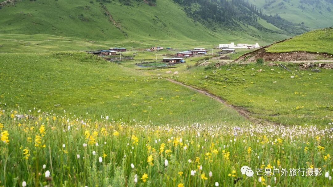 从格木村出发,一路都是花海草地,错落有致的村庄,点缀着草原,世外桃源般的村落住着一群淳朴的人儿,见人就问好"扎西德勒",非常的热情。一路沿着公路走,半路一个皮卡主动停下来搭我们一程,司机师傅在前面不远的地方工地干活,顺带就带我们过去了,今天我们就省了不少时间,很早就到达了营地,我们往营地前面推进了2公里到达垭口下方,天气不是特别好,所以决定今天先不过垭口了。