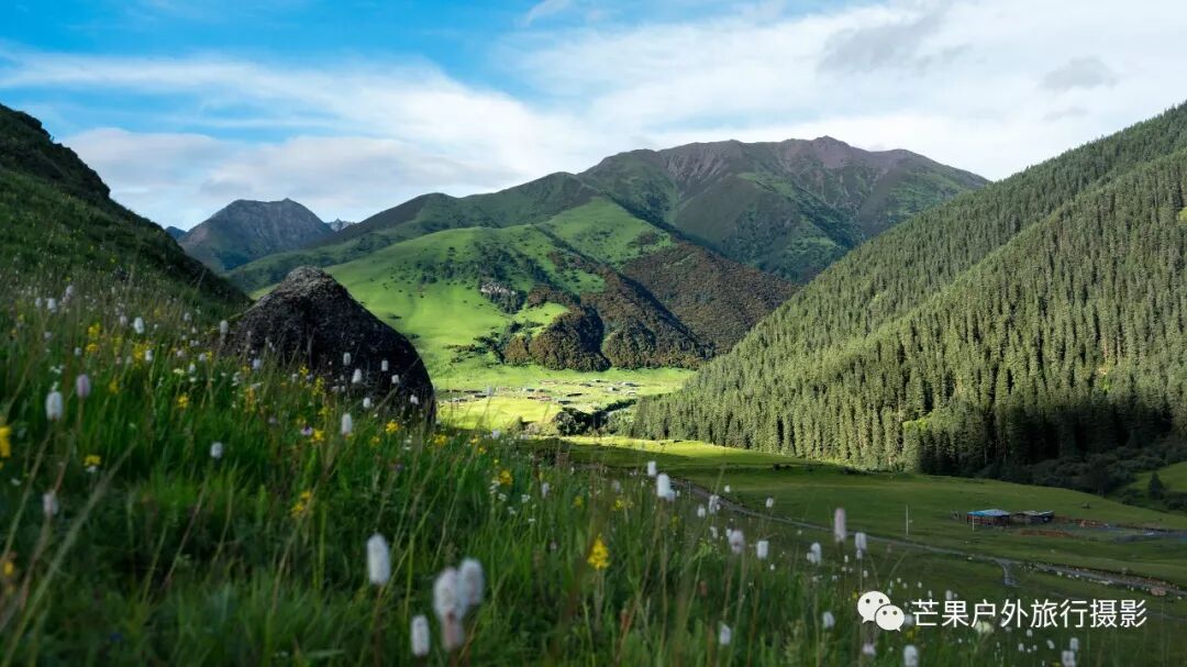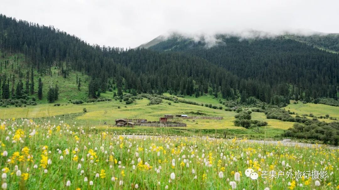 热梯河谷水流蜿蜒曲折,水流清澈见底,早晨花海草地拔营,开始绕着河湾徒步,穿越湿地,穿越树林,极速的爬升至左侧上游河谷,开始缓慢的河谷爬升至最后的垭口沟口。我们在这里午休,吃路餐,然后就开始陡峭的爬升,垭口难点正式开始,上升到左侧的河谷平台,就能看见过拉卡垭口,很平缓的一个垭口,轻松的就翻过去了,虽然海拔高,但是难度不算大。拍完照片开始下山,下到谷底就开始下雨,此时遇到当地的小朋友,打了招呼给了几颗糖果便继续沿着河流往下走,到了几个牧民家,去家里喝了点酥油茶,一如既往的纯纯的味道。喝完茶,告别牧家,继续往格木村方向走去,还没有到达格木村,就已经回味到几年前这里的风景如此漂亮,现在夏季的绿色更有味道,安静的村落,绿色的地毯,遍地花海,原始的小木屋,这里生活着这么一群犹如世外桃源的村民。拓宽的公路,也行再过几年这里会变得非常的热闹!因为这里实在太美!今晚就在格木帐篷客栈住下,放好行李安顿下来,我们去了后山拍了许多村子的照片。