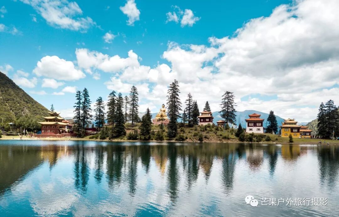 一条盘山路大约需要半小时才能到达措卡湖,措卡湖周围修满了寺庙